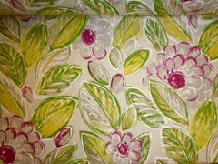 Back in the Day Floral design decor fabric, color Tropical with purples, greens and yellows, from P Kaufmann Fabrics Warehouse Clearance, special inventory reduction prices on first quality designer home decor fabric