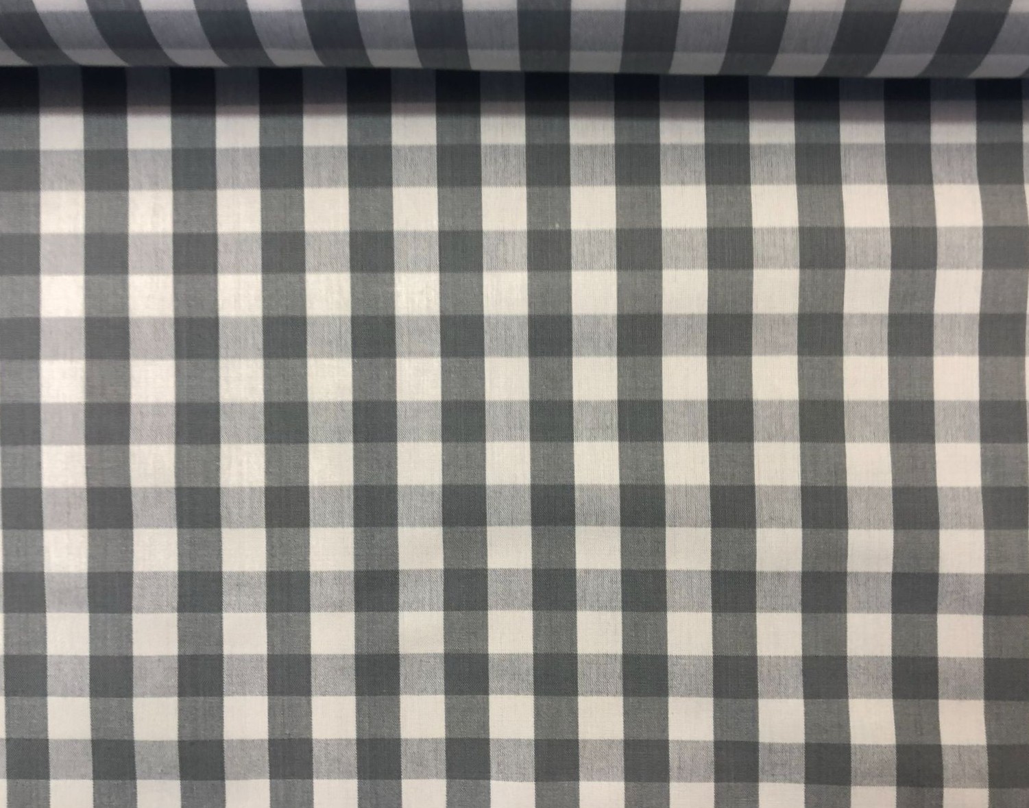 This is a premium high end gray and white cotton small check fabric, also known as gingham or buffalo plaid