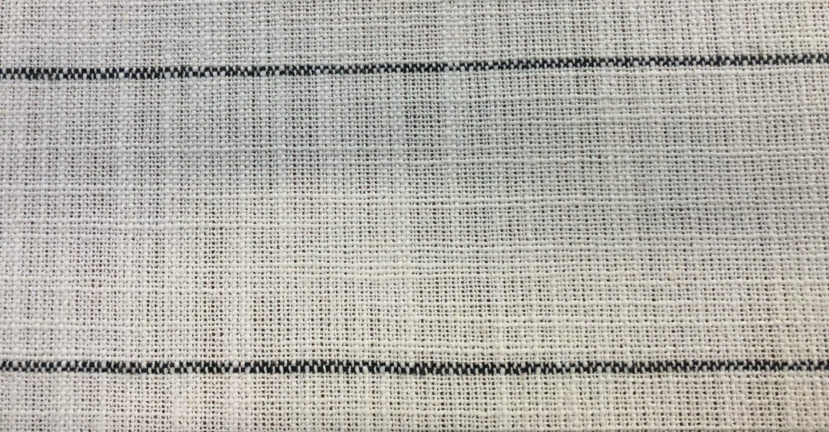 PK Lifestyles Huntington Stripe featuring a "Domino" (black and white) thin pinstripe railroaded pattern that is a high-performance, woven upholstery fabric which is durable and classic. Part of the Performance Plus II collection, it is designed for heavy-duty use with a factory-applied protectant that makes it soil and stain resistant. A woven linen-blend fabric that offers a soft yet stable and durable feel.